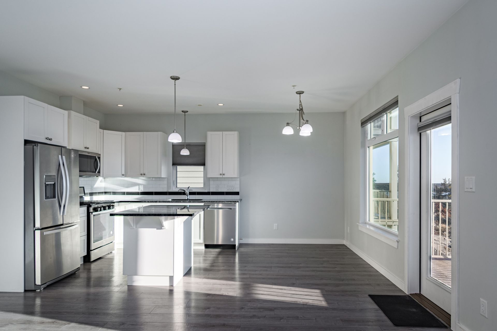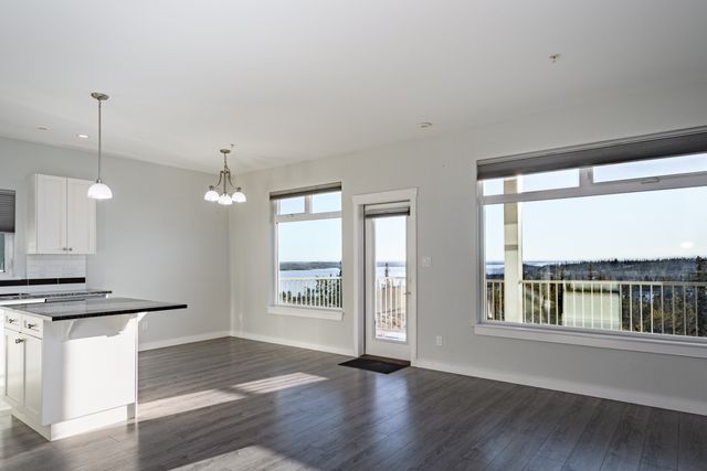 Step into this beautifully designed 3-bedroom, 2-bath condo that perfectly blends modern comfort and style. High ceilings and expansive windows fill the open-concept living, dining, and kitchen areas with natural light, offering breathtaking views of Great Slave Lake. The bright, contemporary kitchen features white cabinetry, quartz countertops, a classic subway tile backsplash, stainless-steel appliances, and a spacious eat-up island that’s perfect for entertainin…g or casual dining.