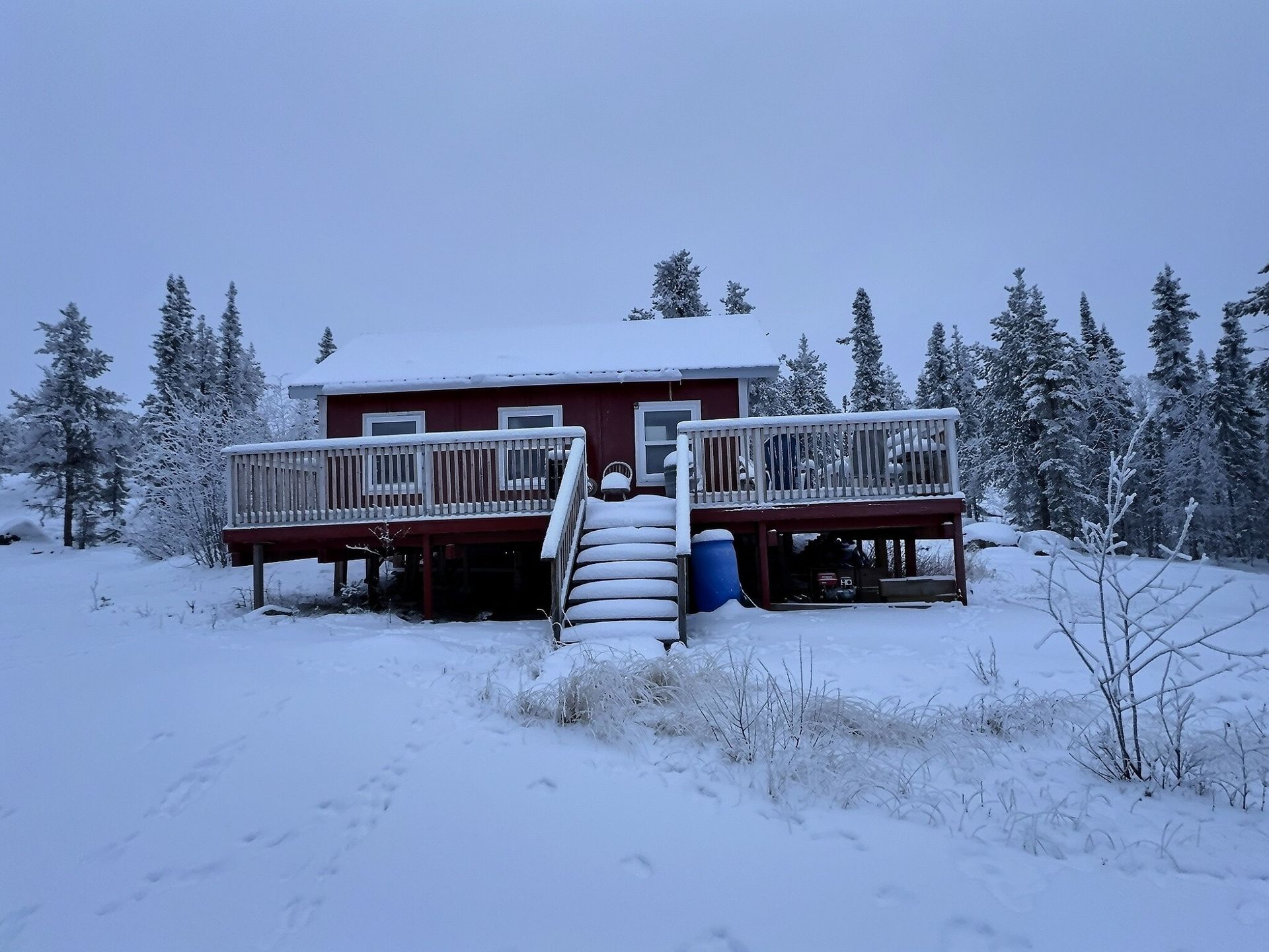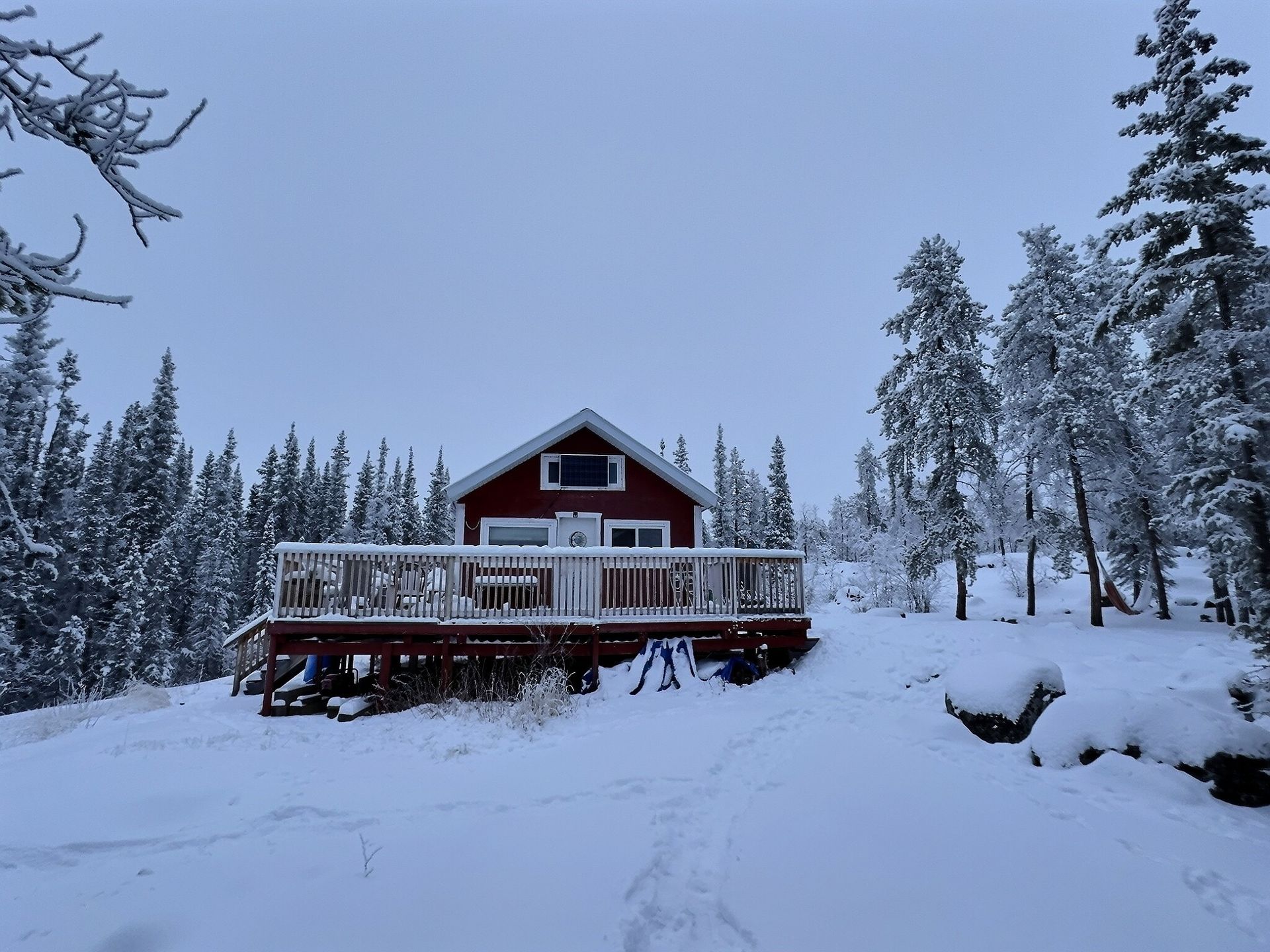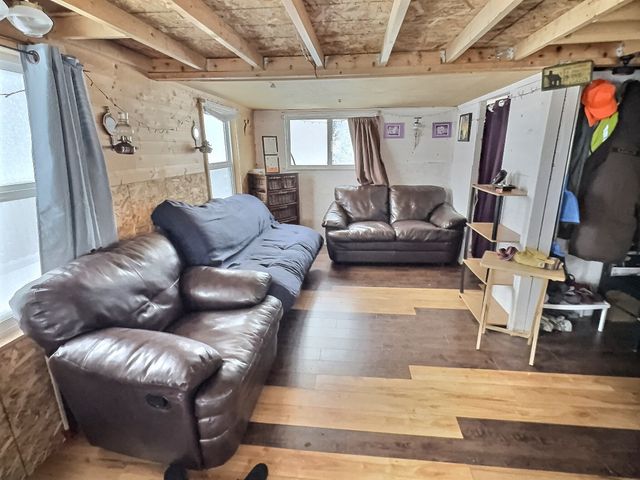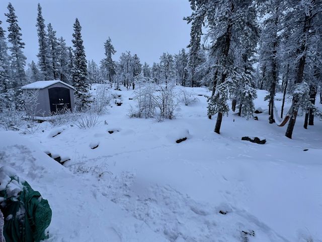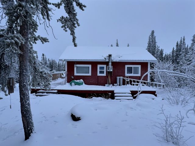Located near Hidden Lake Cameron Falls Territorial Park, this furnished cabin on leased land offers year-round access and a comfortable setup for all seasons.