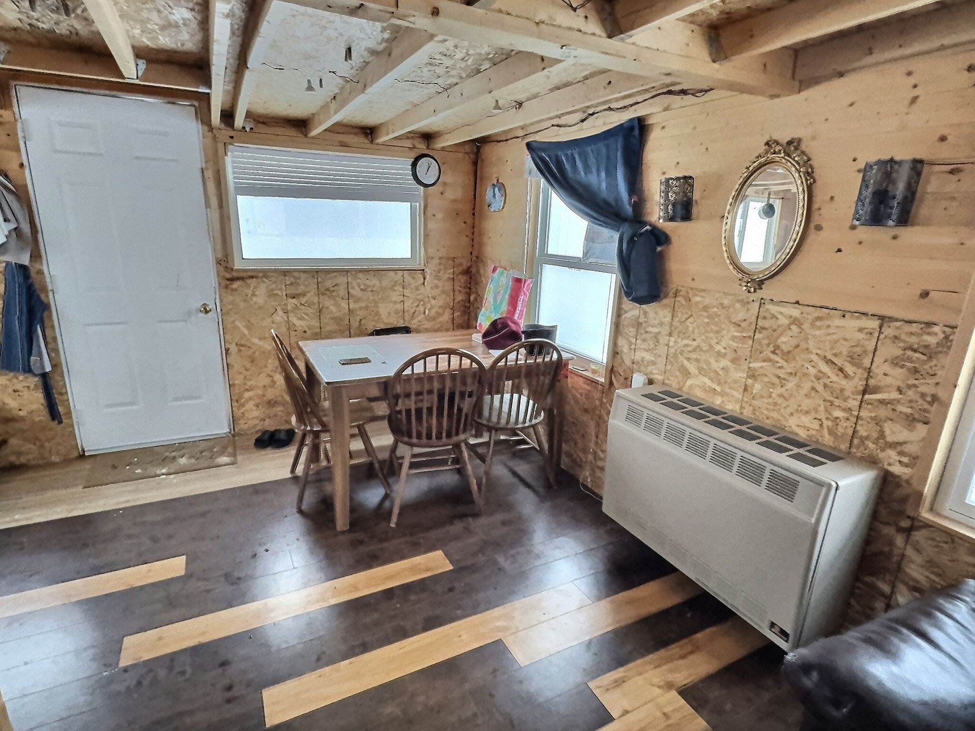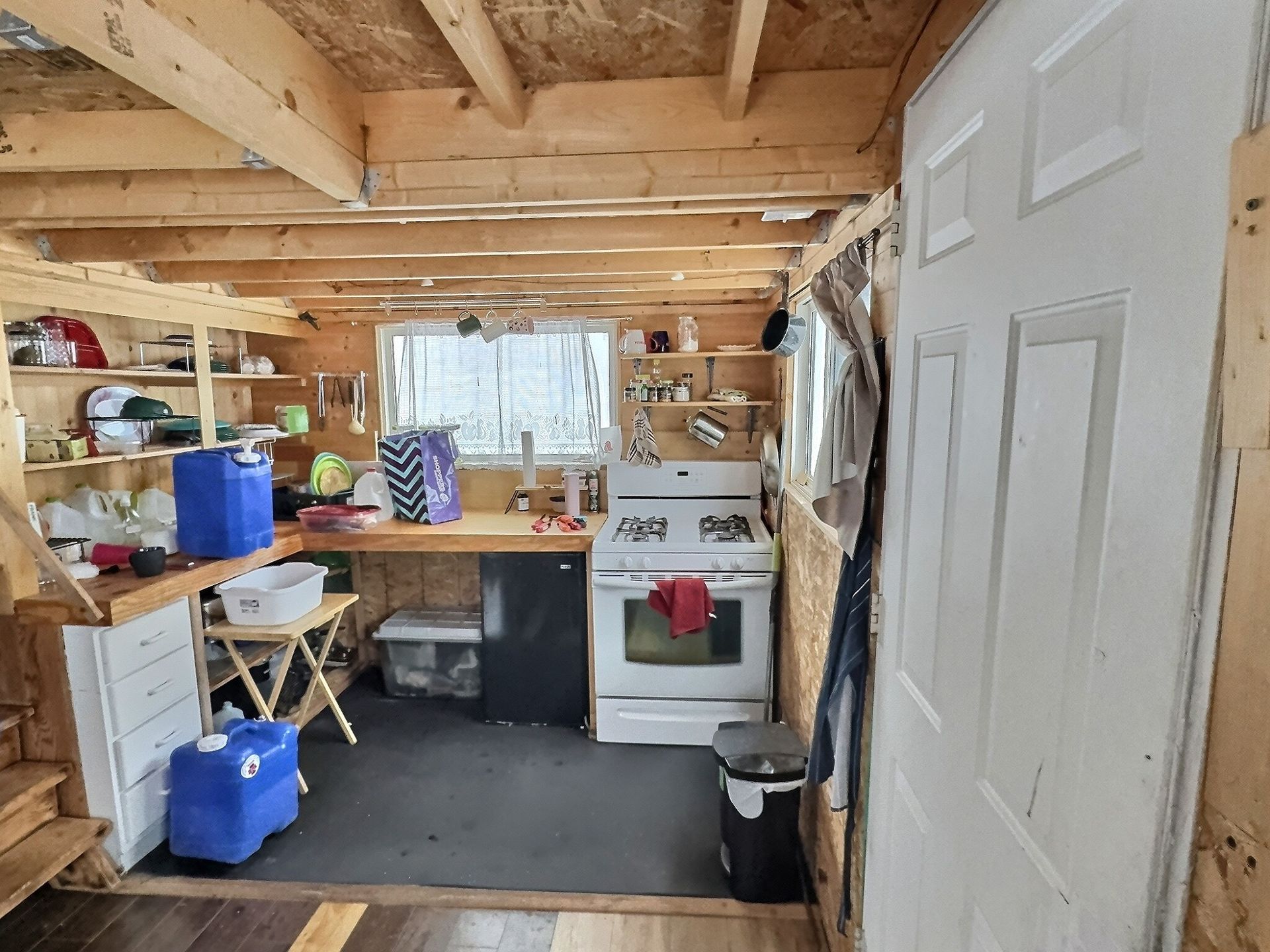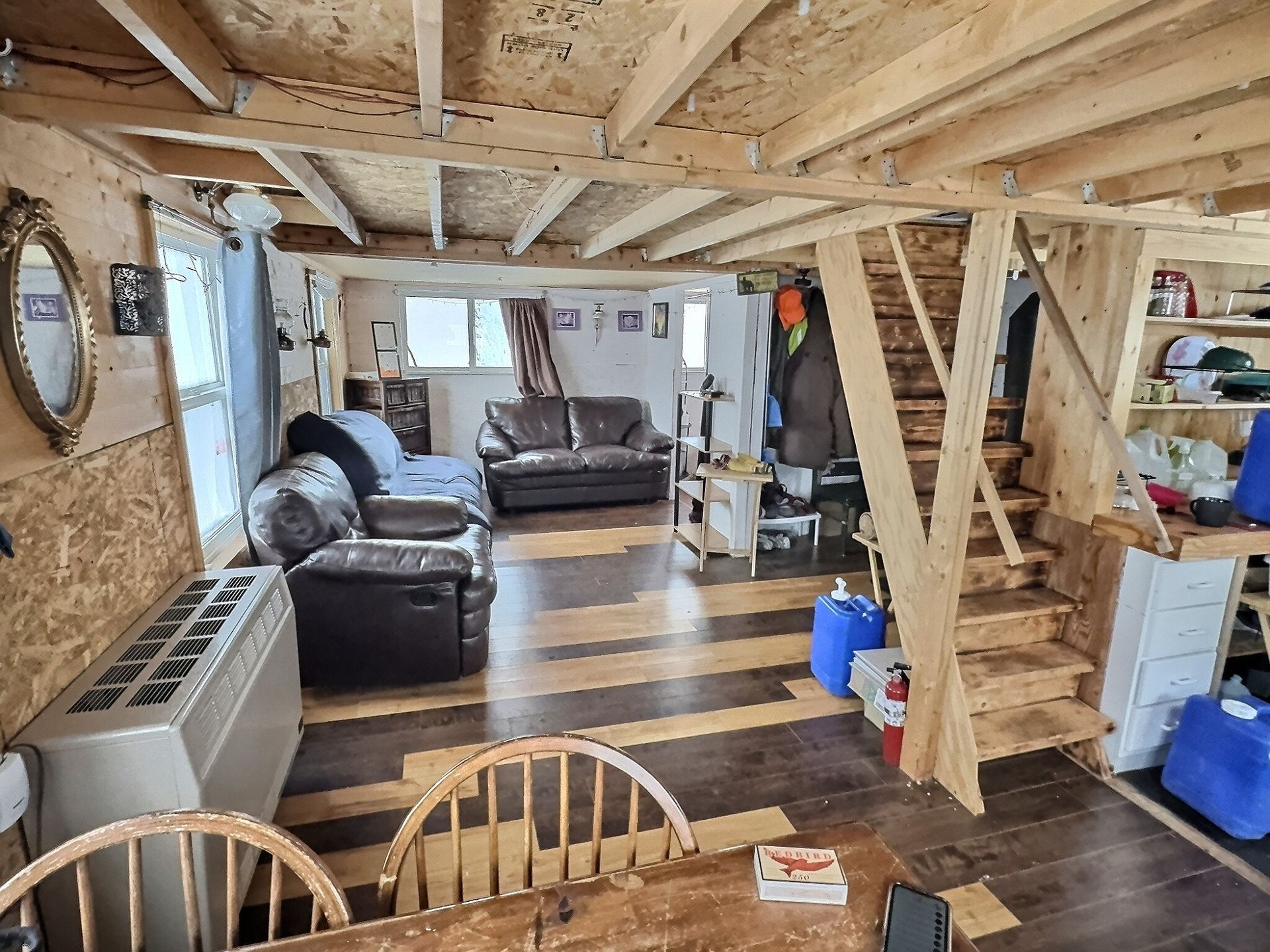There is also an indoor washroom, and both a wood stove and a propane heater for reliable heat. There is also a small solar system with interior lights Upstairs, a large loft sleeping area comfortably sleeps several people, with 3 double beds and 1 twin bed, making it ideal for families, groups, or hosting guests.