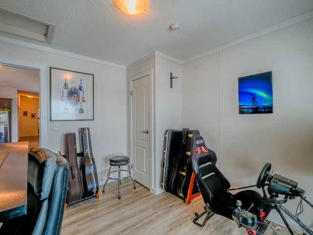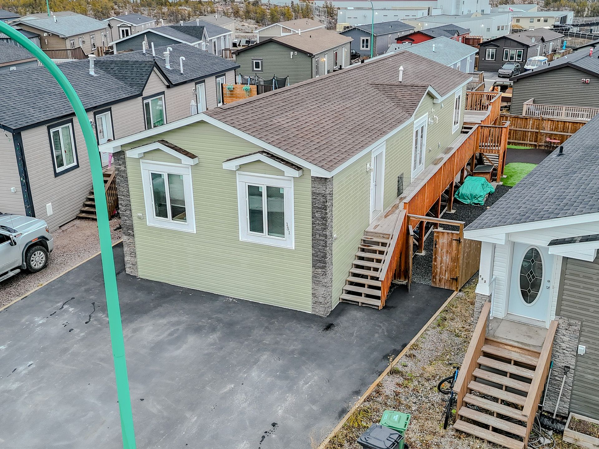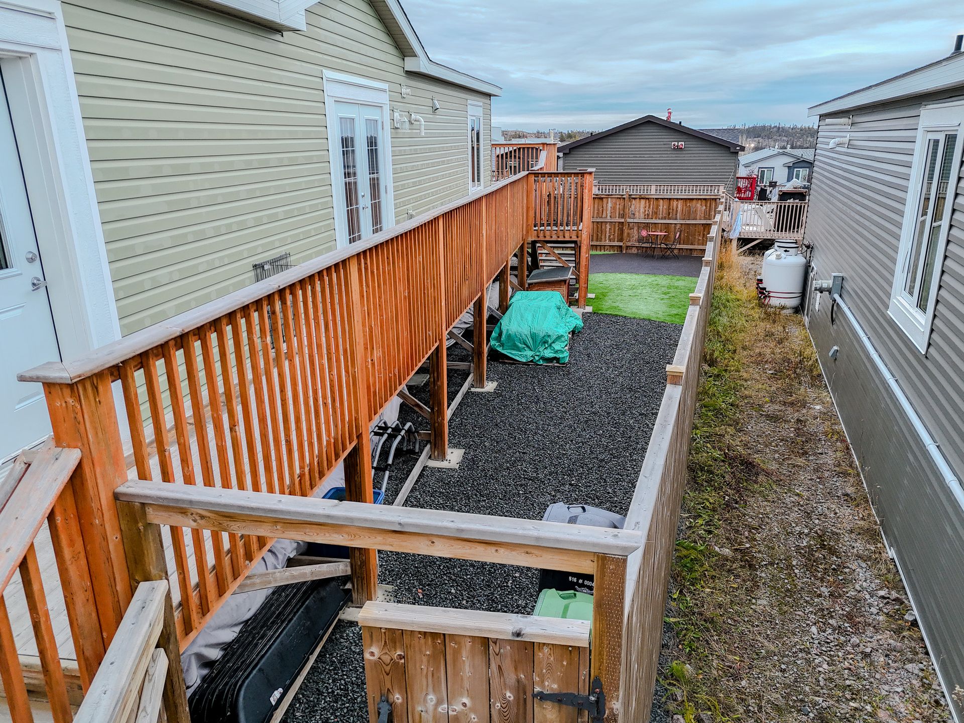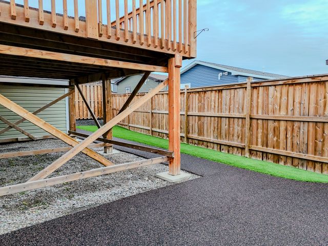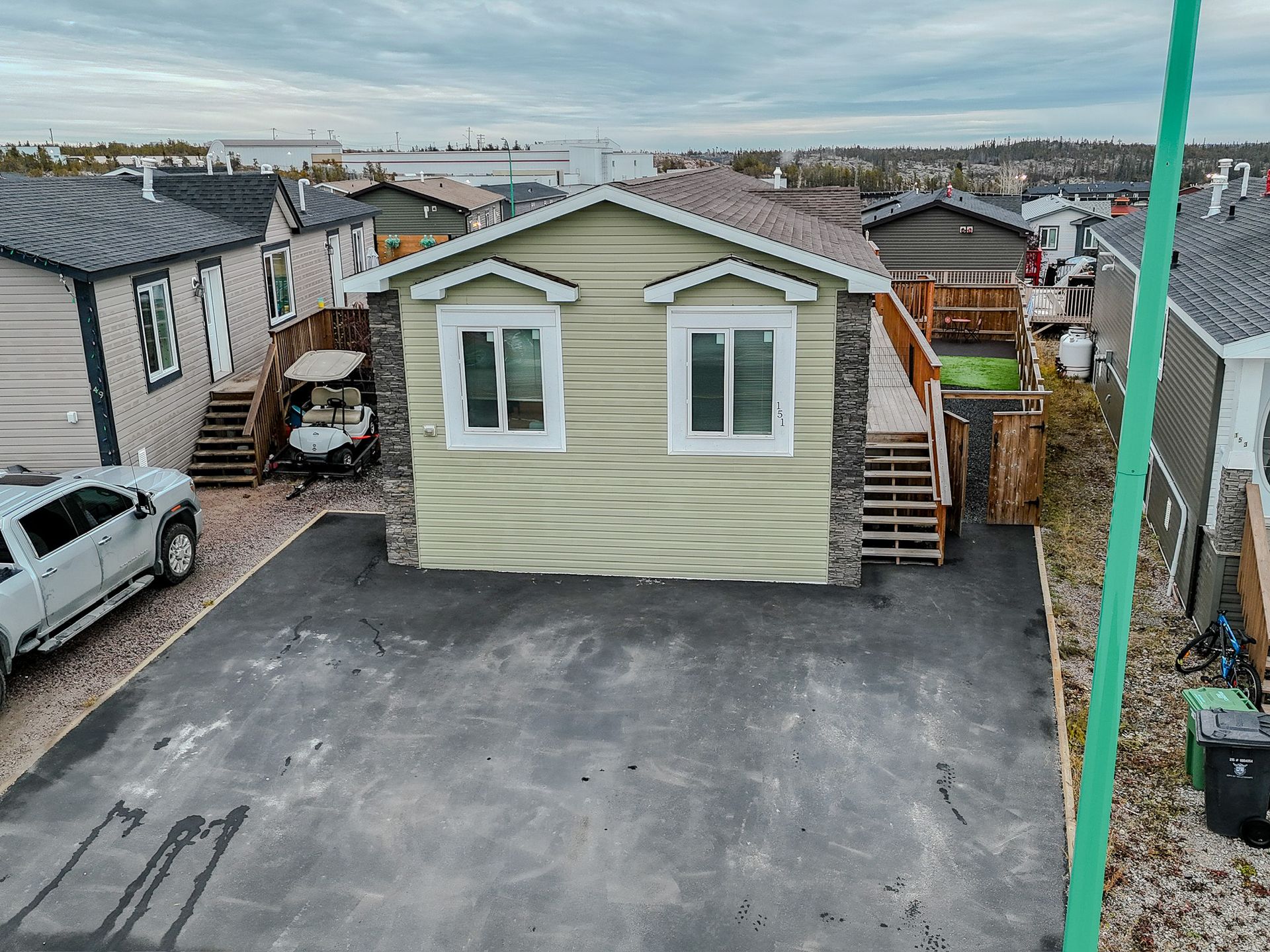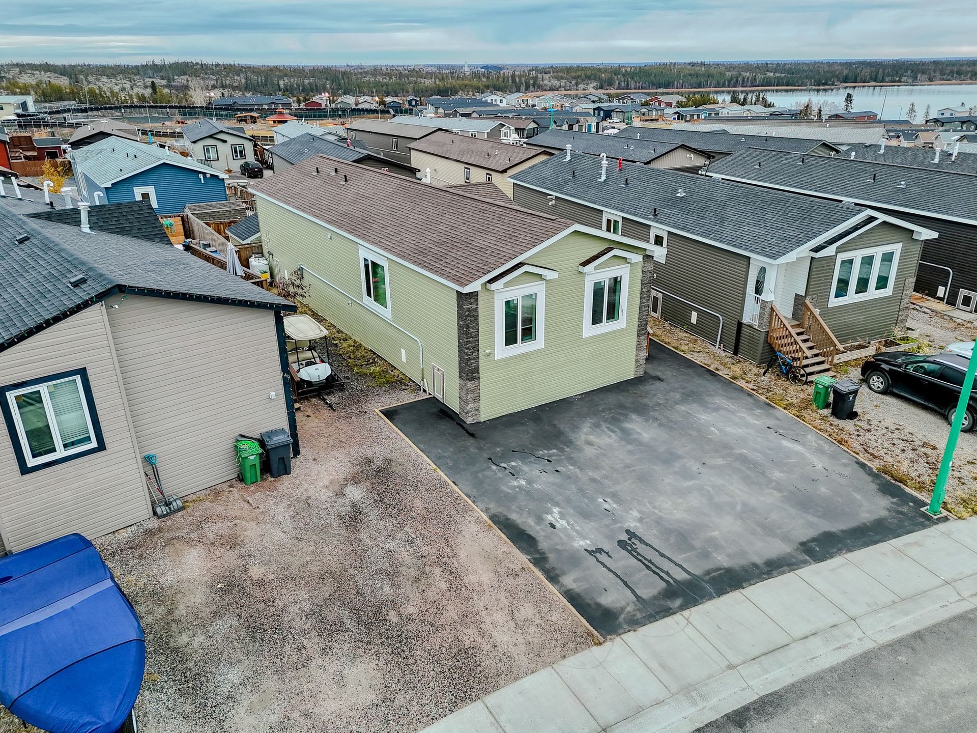 The fully fenced yard has been professionally landscaped by Arctic Turf, featuring three layers of weed barrier, crush stone, two sections of artificial turf, and a recycled rubber pathway with a sitting area. A custom wired shed adds extra utility and the rear deck offers outstanding morning sun and views of Kam Lake. The front offers parking for up to four vehicles.