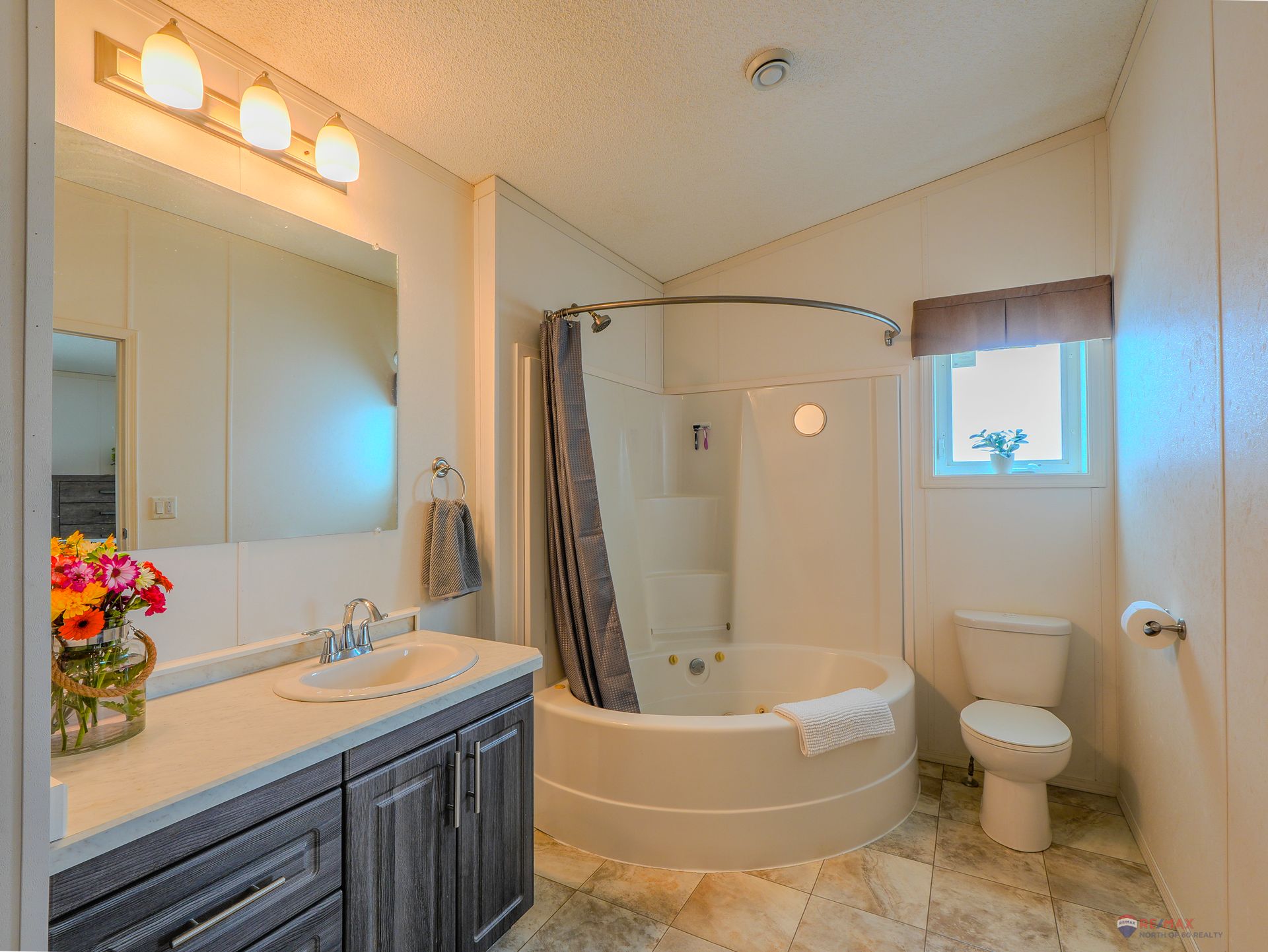 The home offers three generous bedrooms, including a spacious primary retreat complete with a large walk-in closet and full ensuite featuring a jetted corner soaker tub/shower and a separate linen storage closet.