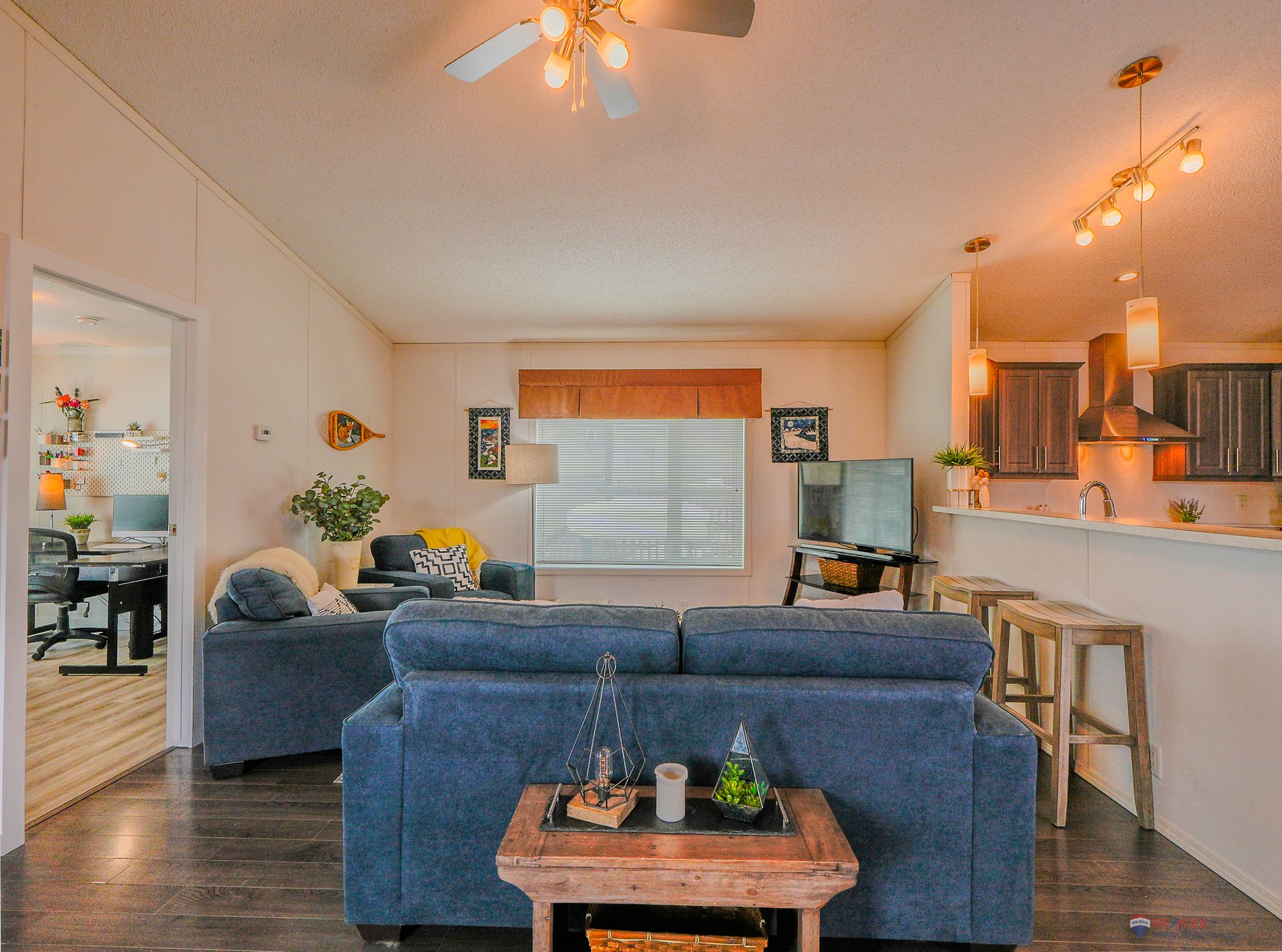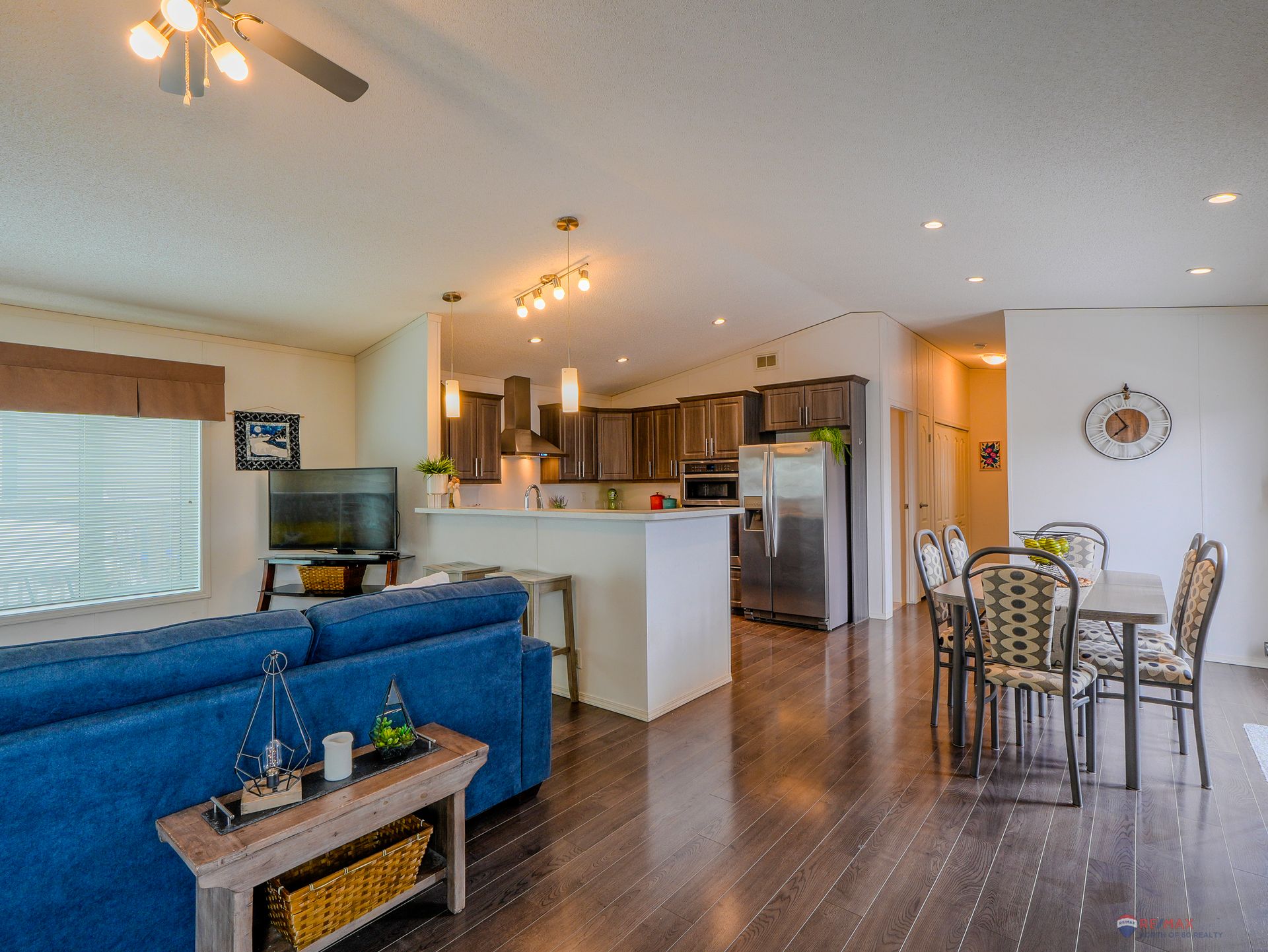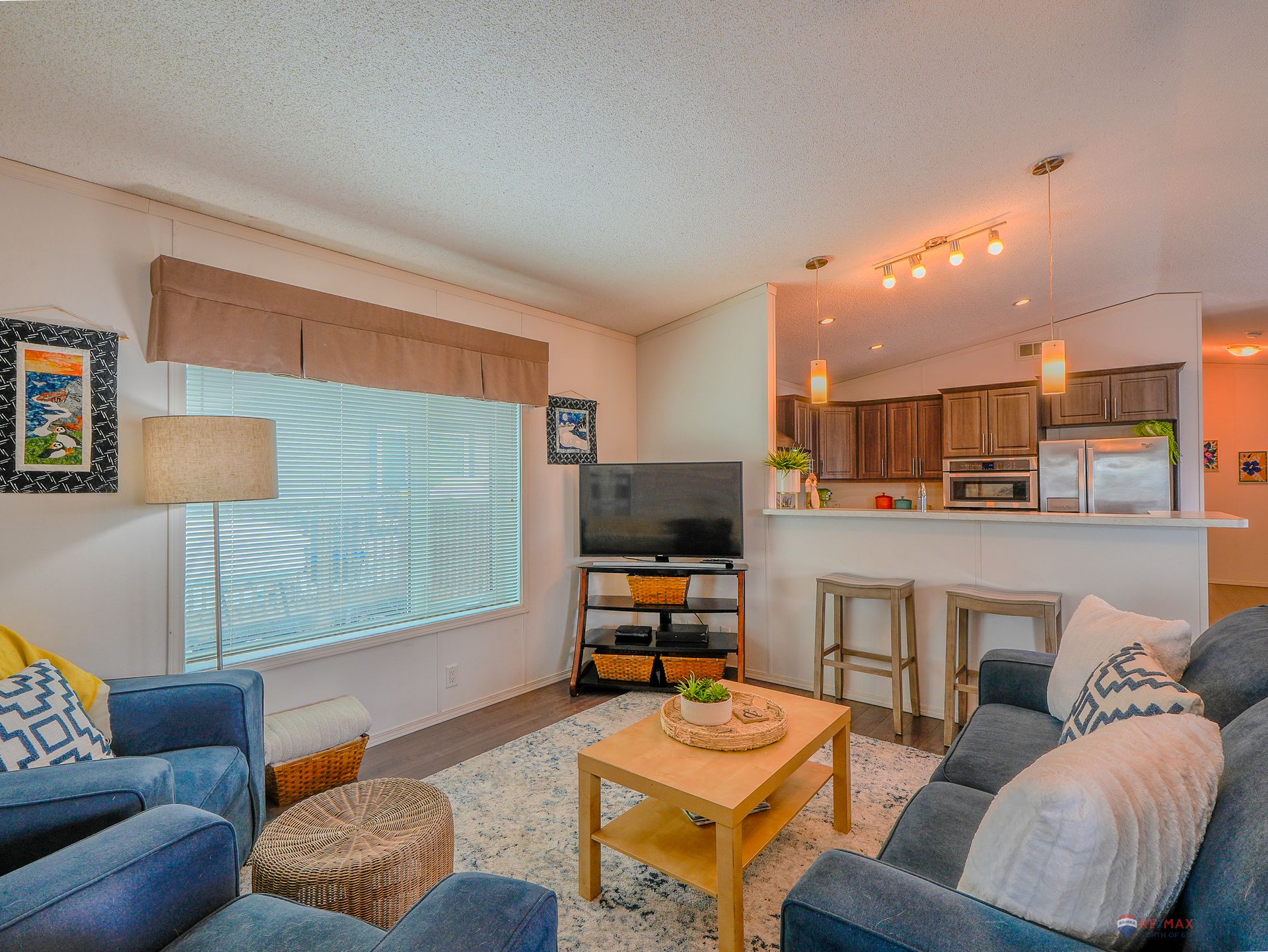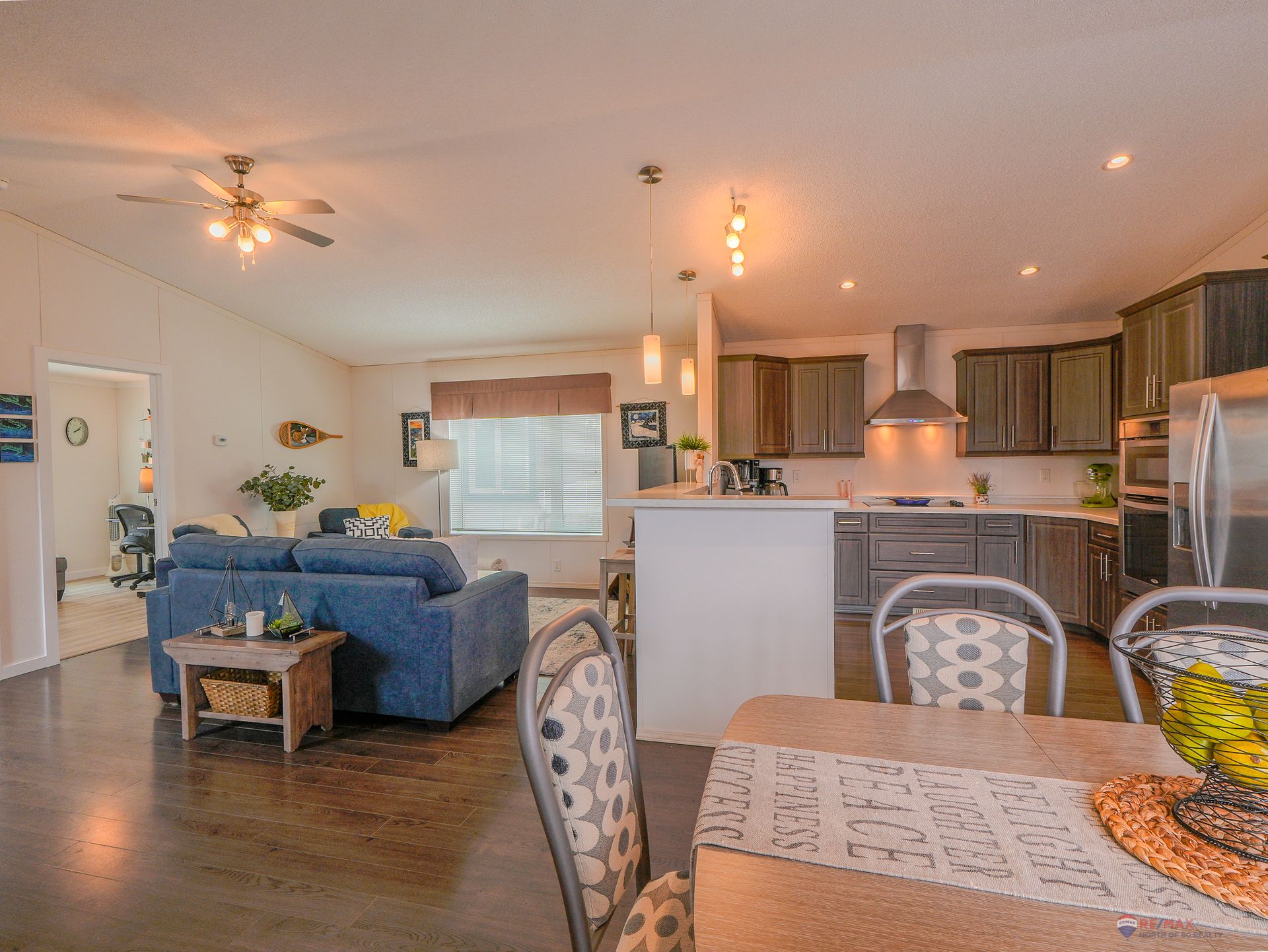 Well-laid-out three-bedroom, two-bath home featuring high-grade laminate throughout the main living areas and cathedral ceilings that enhance the sense of space.
