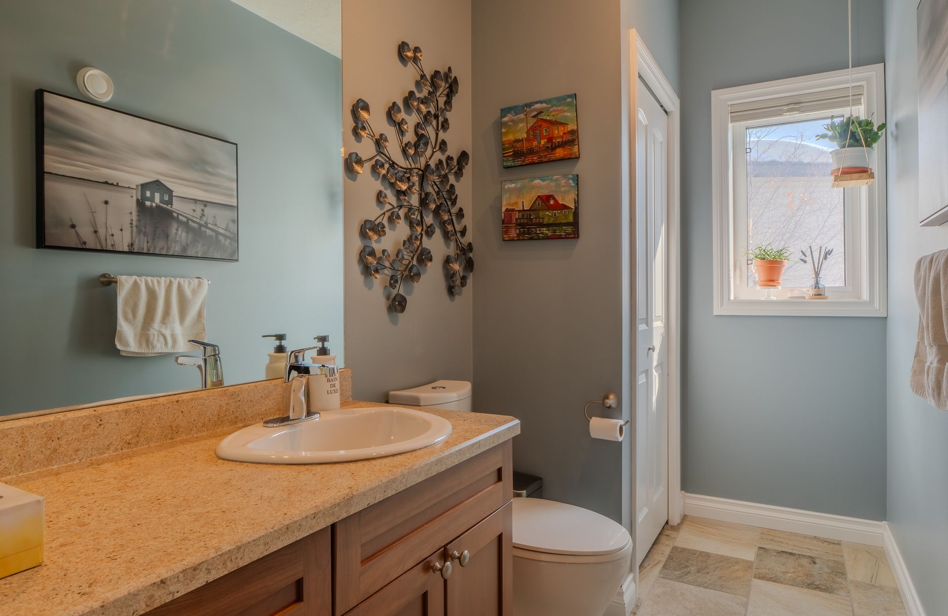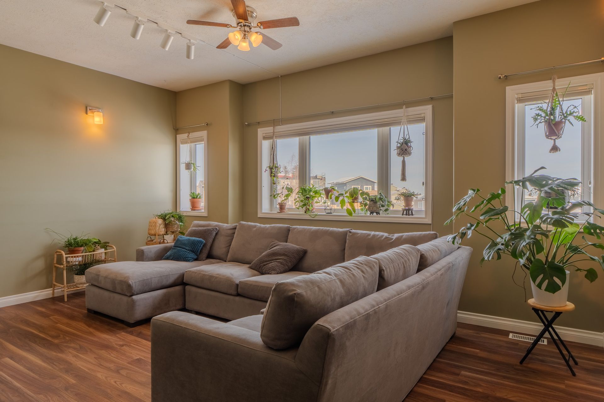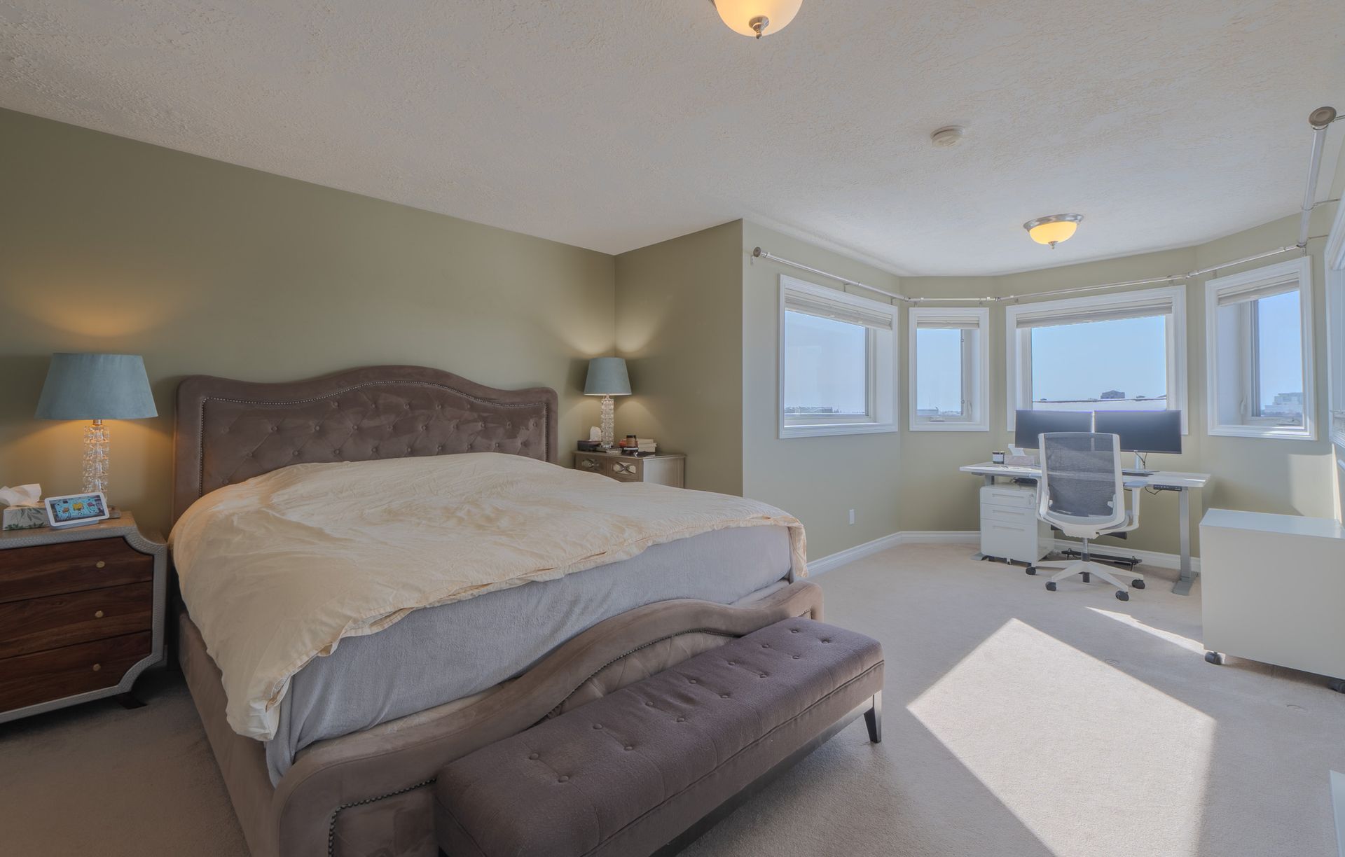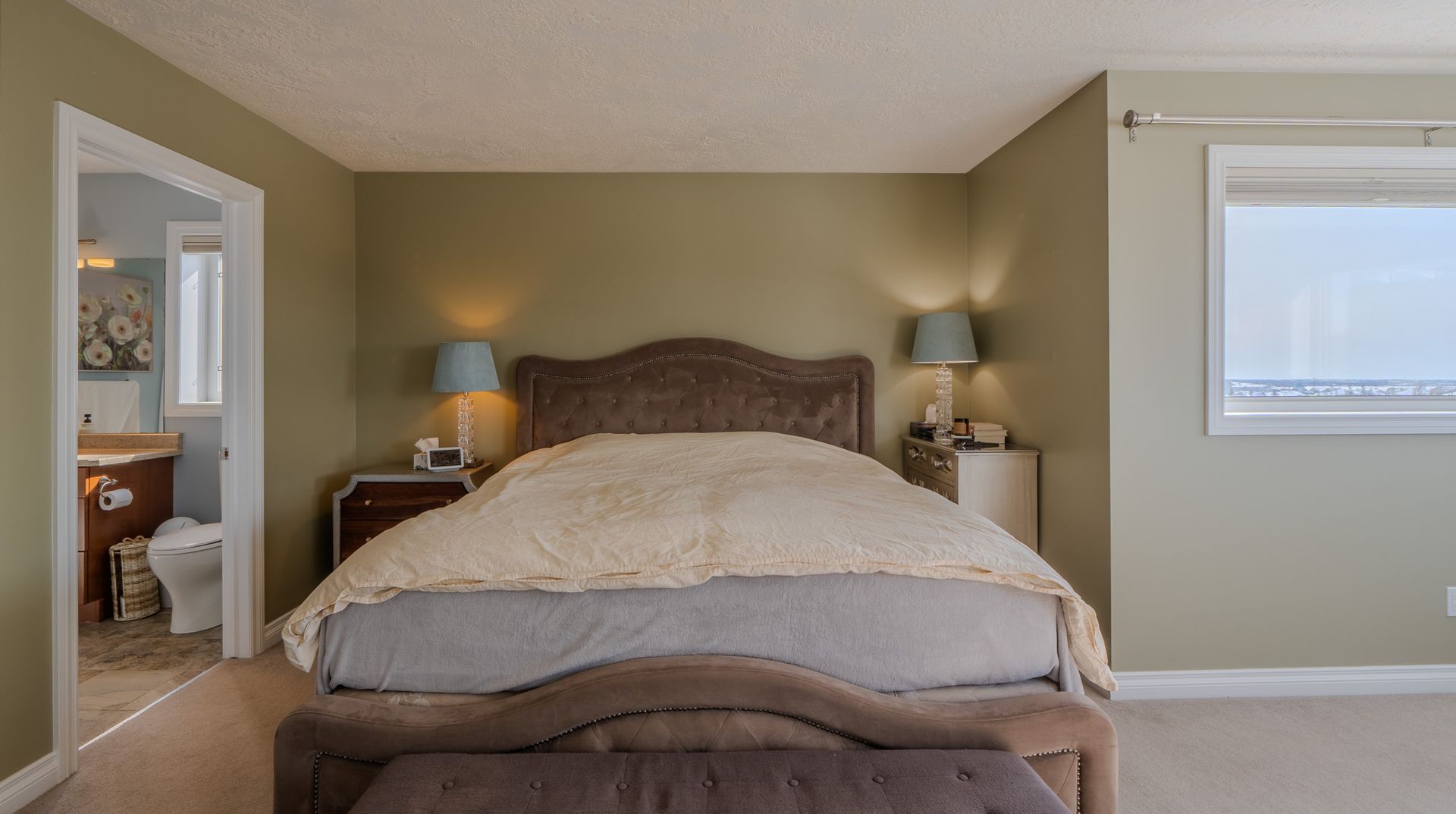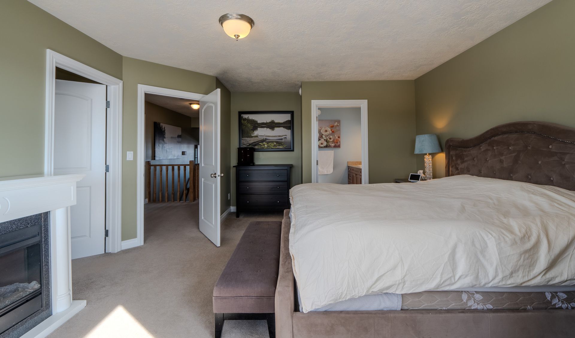 A standout feature of the home is the spacious bonus room between the main and upper levels perfect as a family lounge, office, or playroom. Upstairs, the primary suite is a true retreat, complete with a generous walk-in closet, a well-appointed ensuite, and a bright sitting area showcasing incredible lake views.