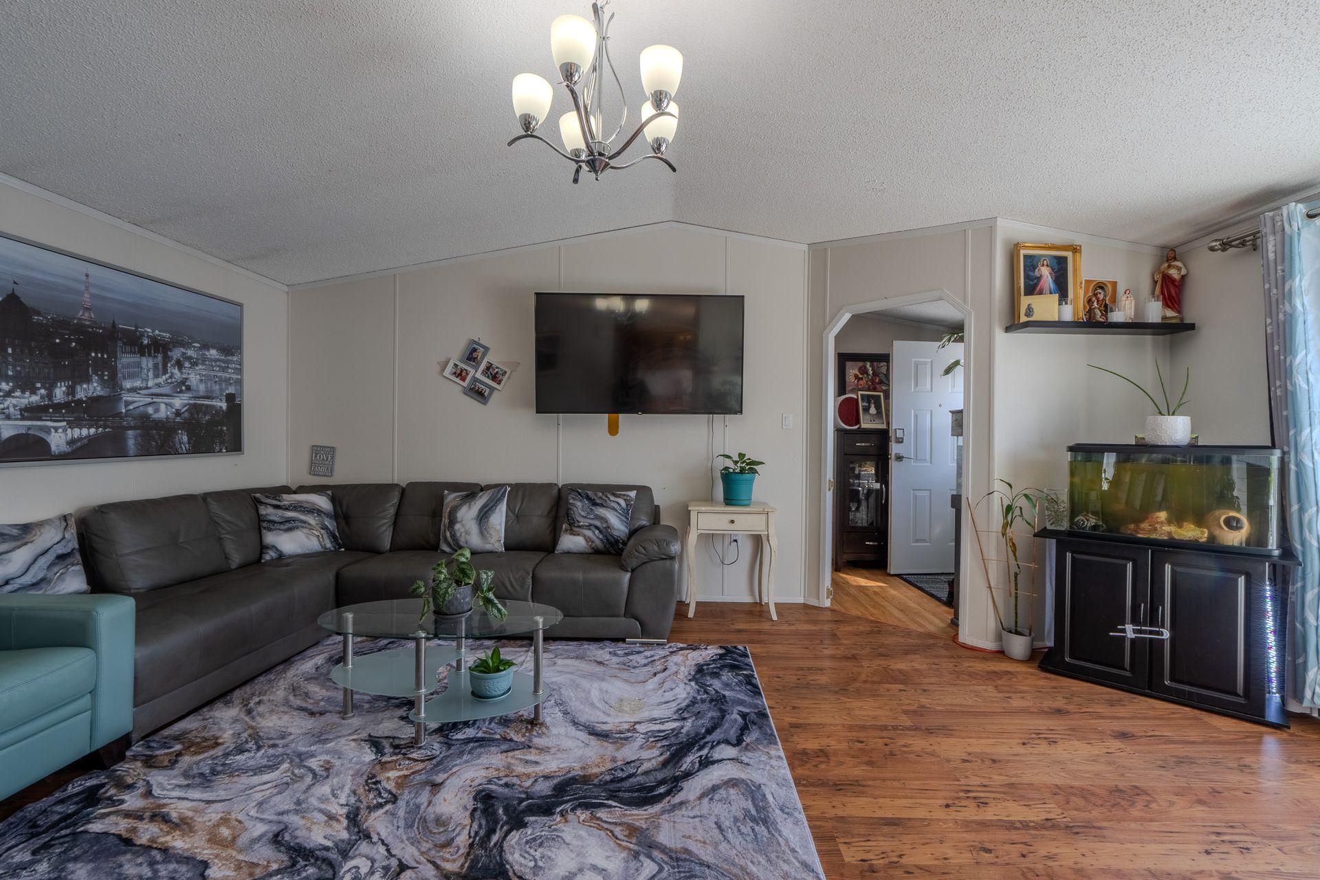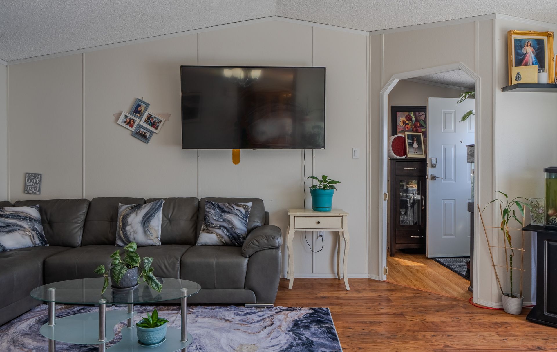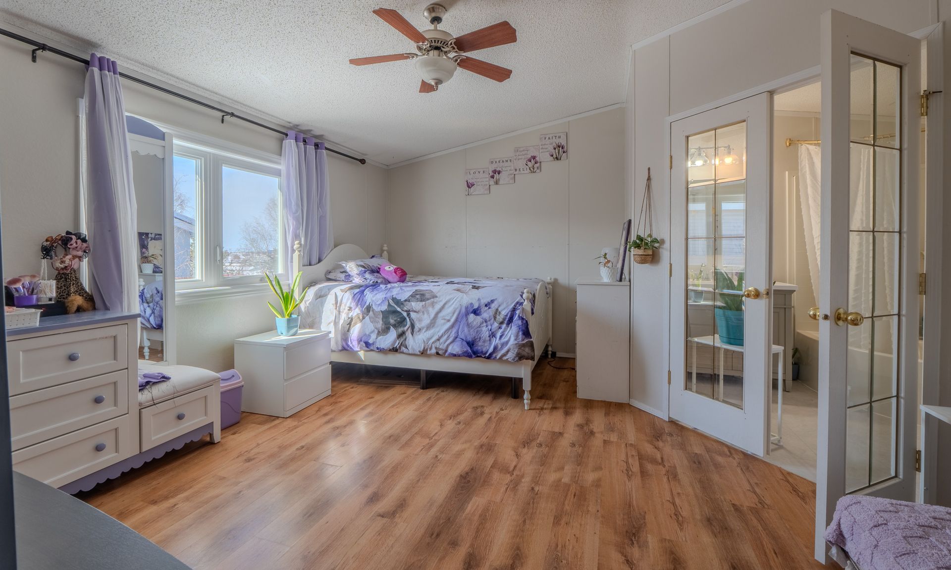 Set on a fully fenced lot, the outdoor space is designed for both relaxation and low maintenance, featuring a large deck, astro turf, large shed, and ample parking.