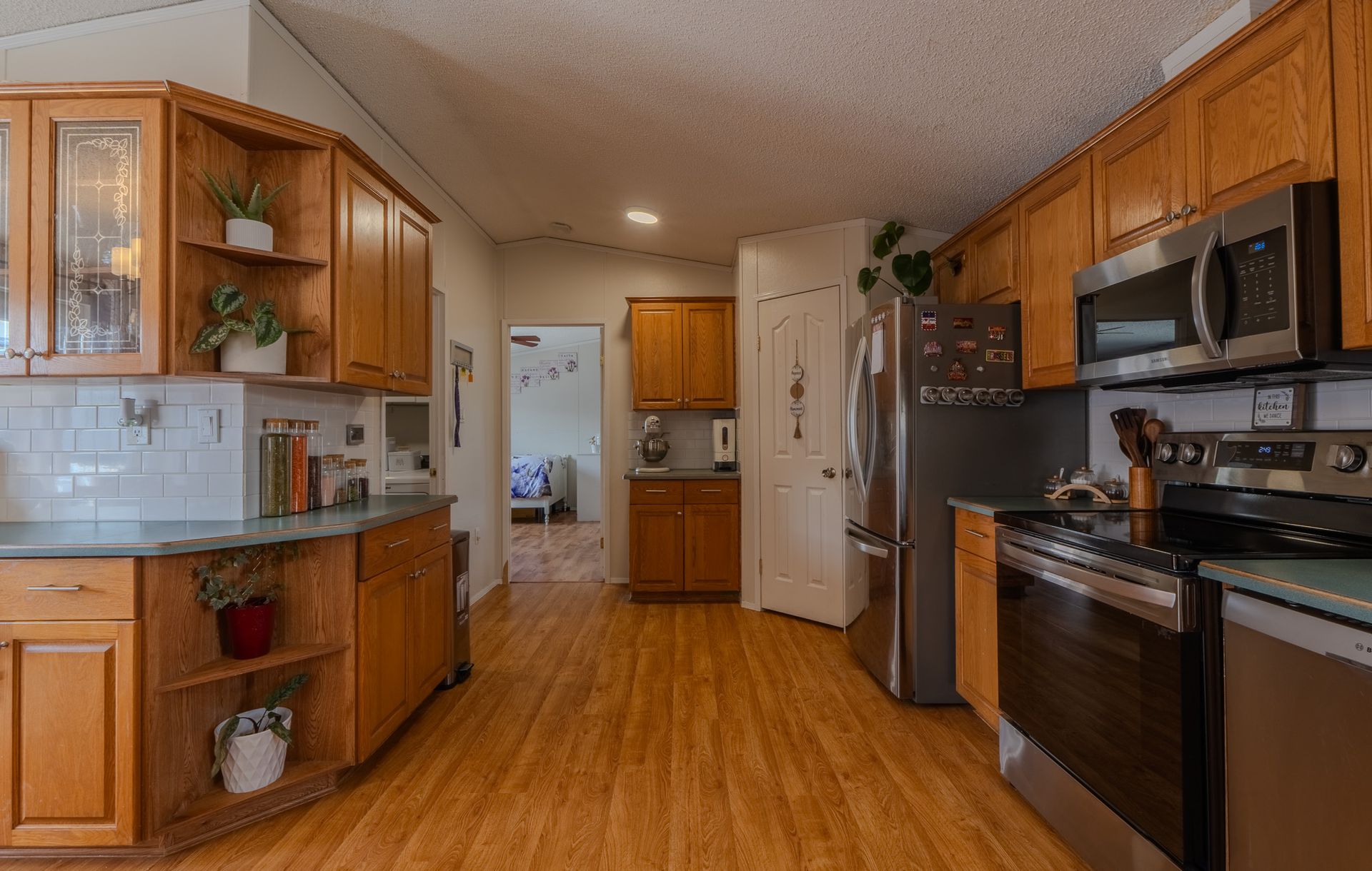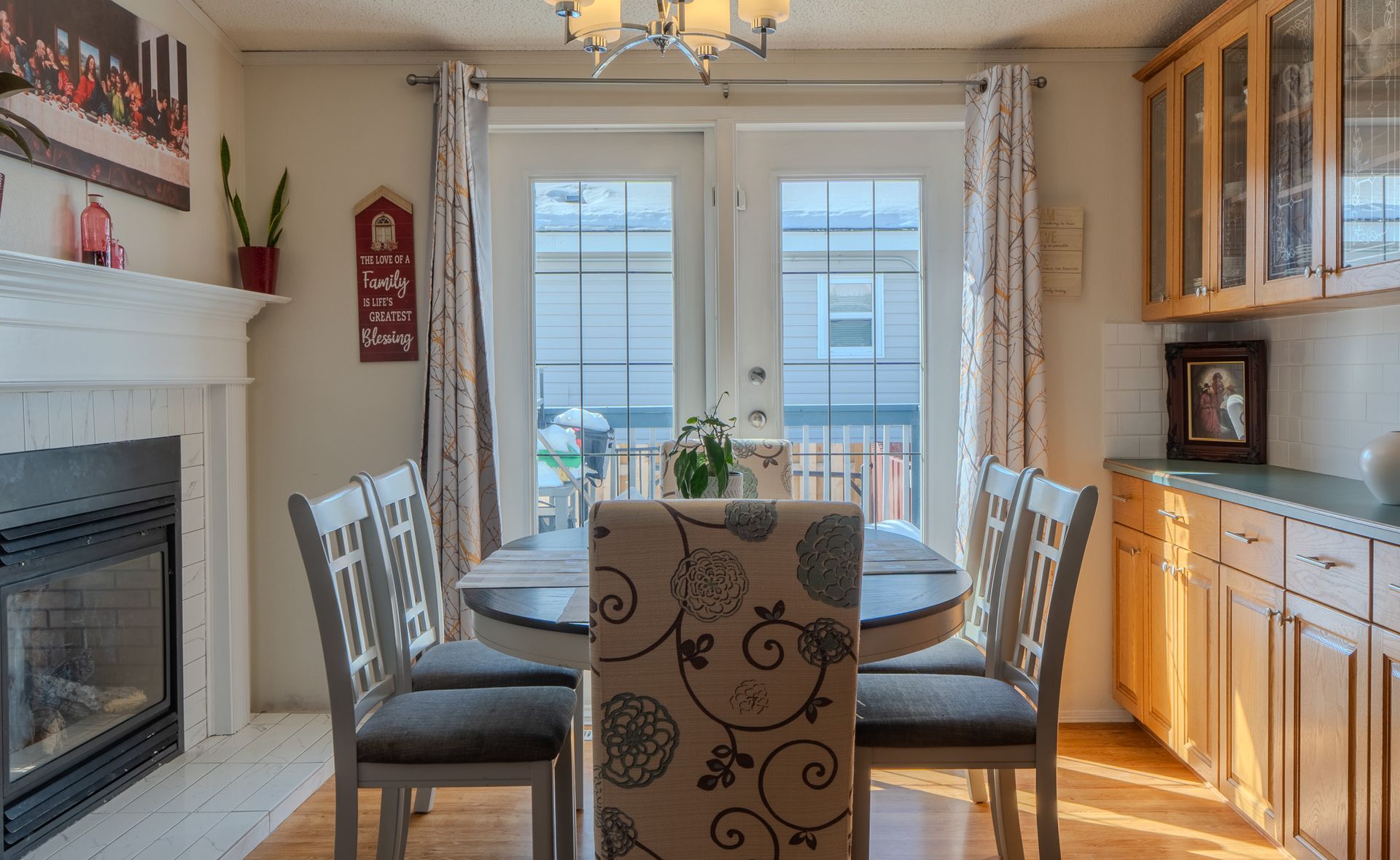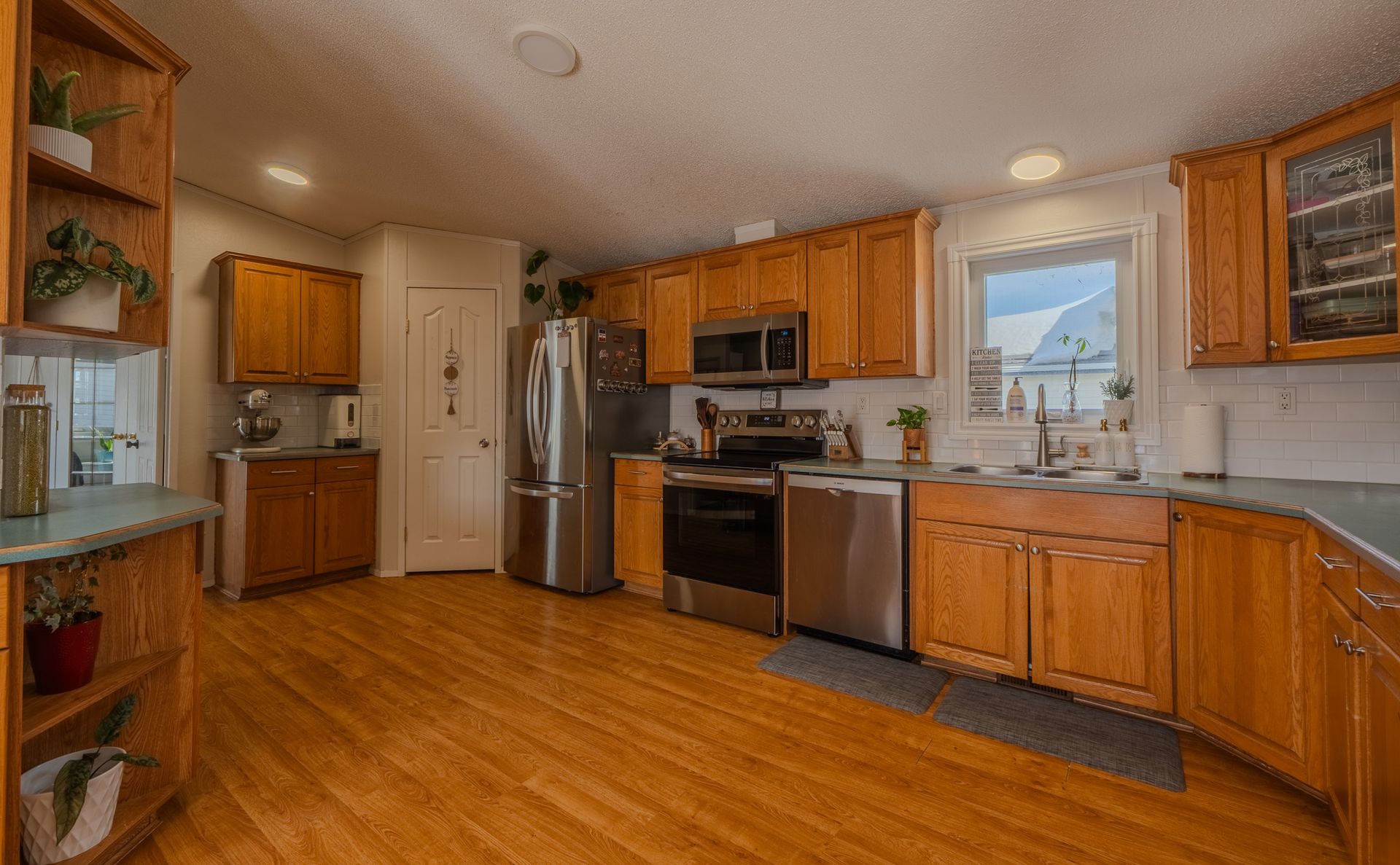 The spacious kitchen offers stainless steel appliances and a pantry, flowing se…amlessly into the living and dining areas, where a cozy two-sided propane fireplace adds warmth and charm.