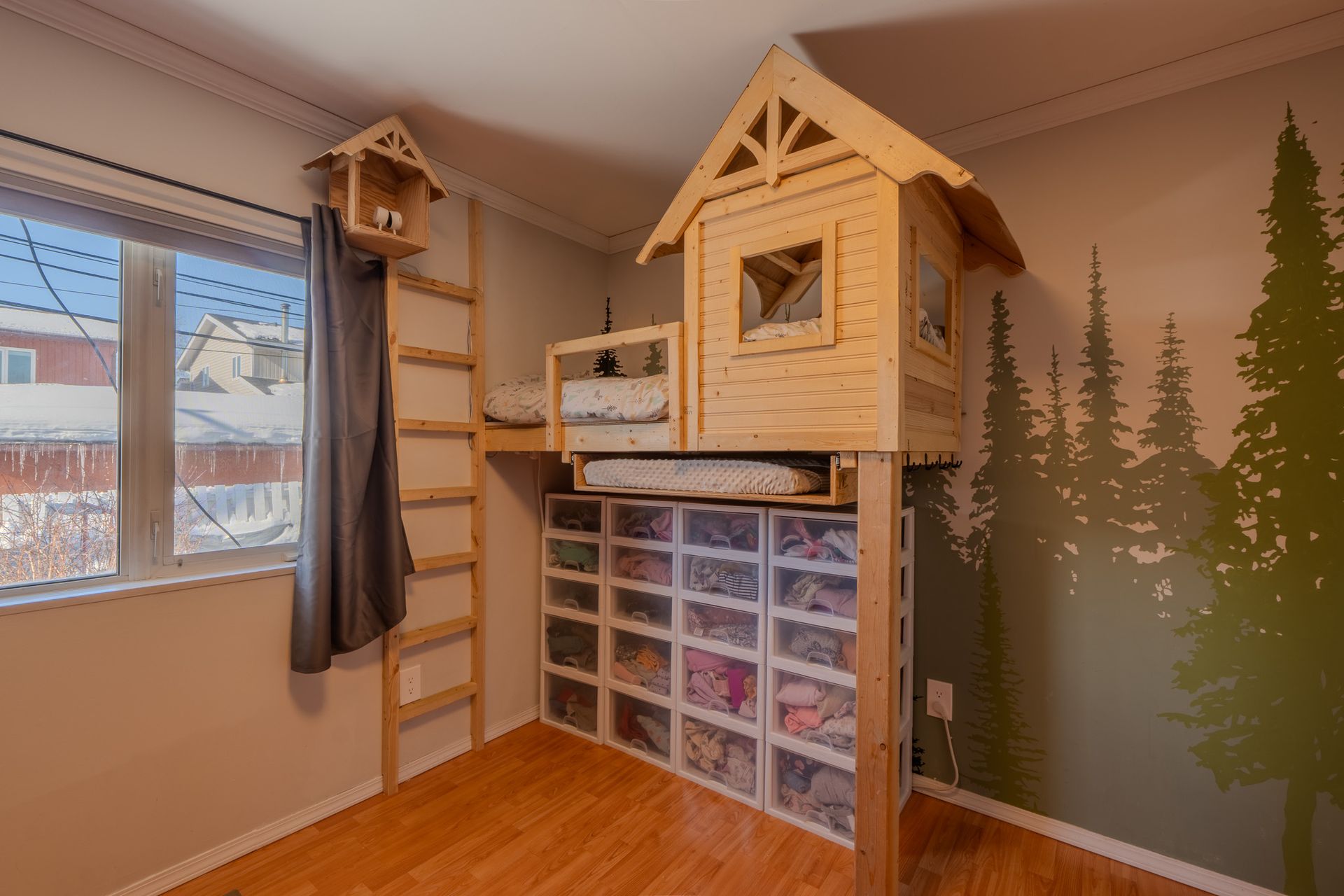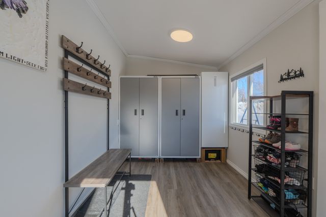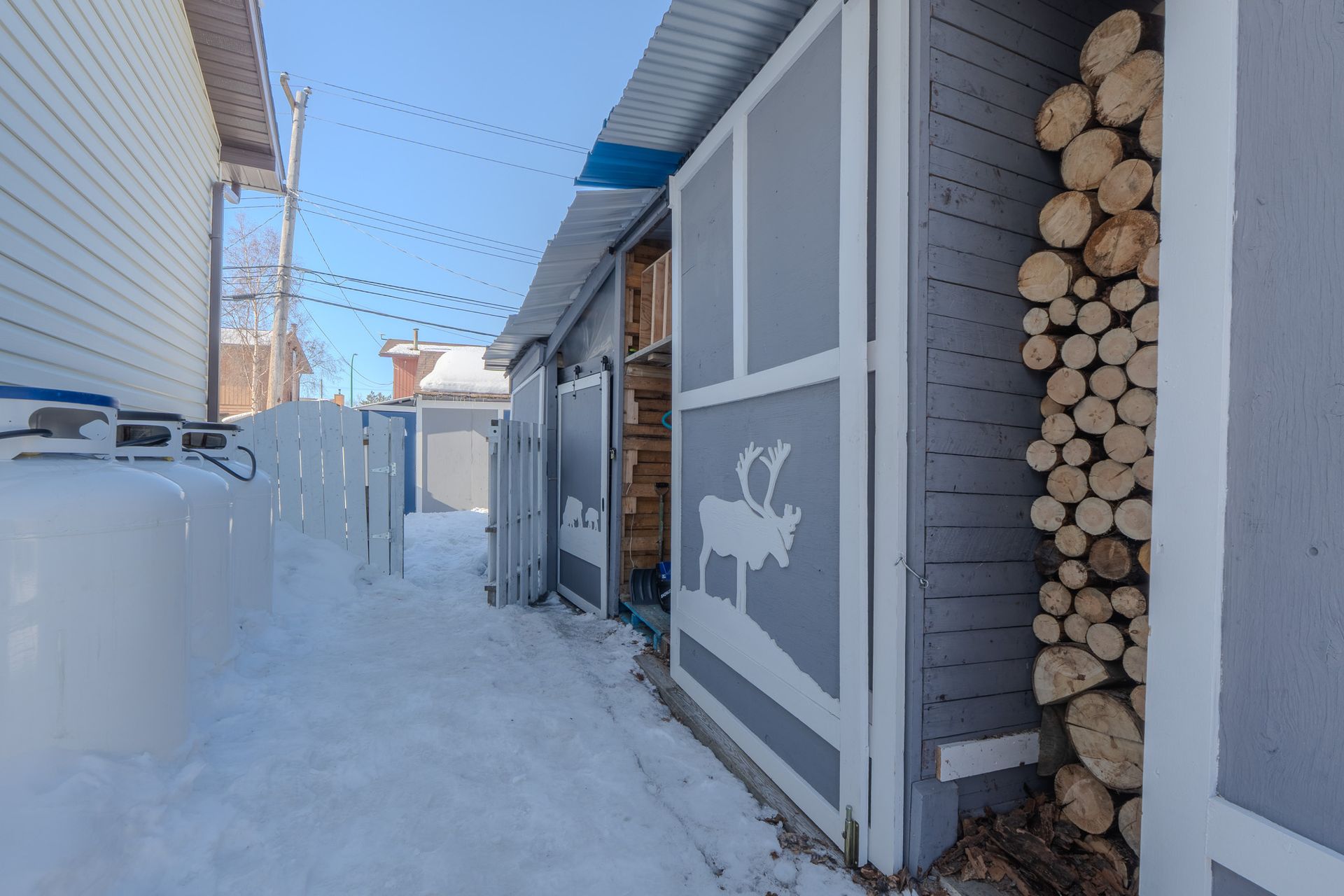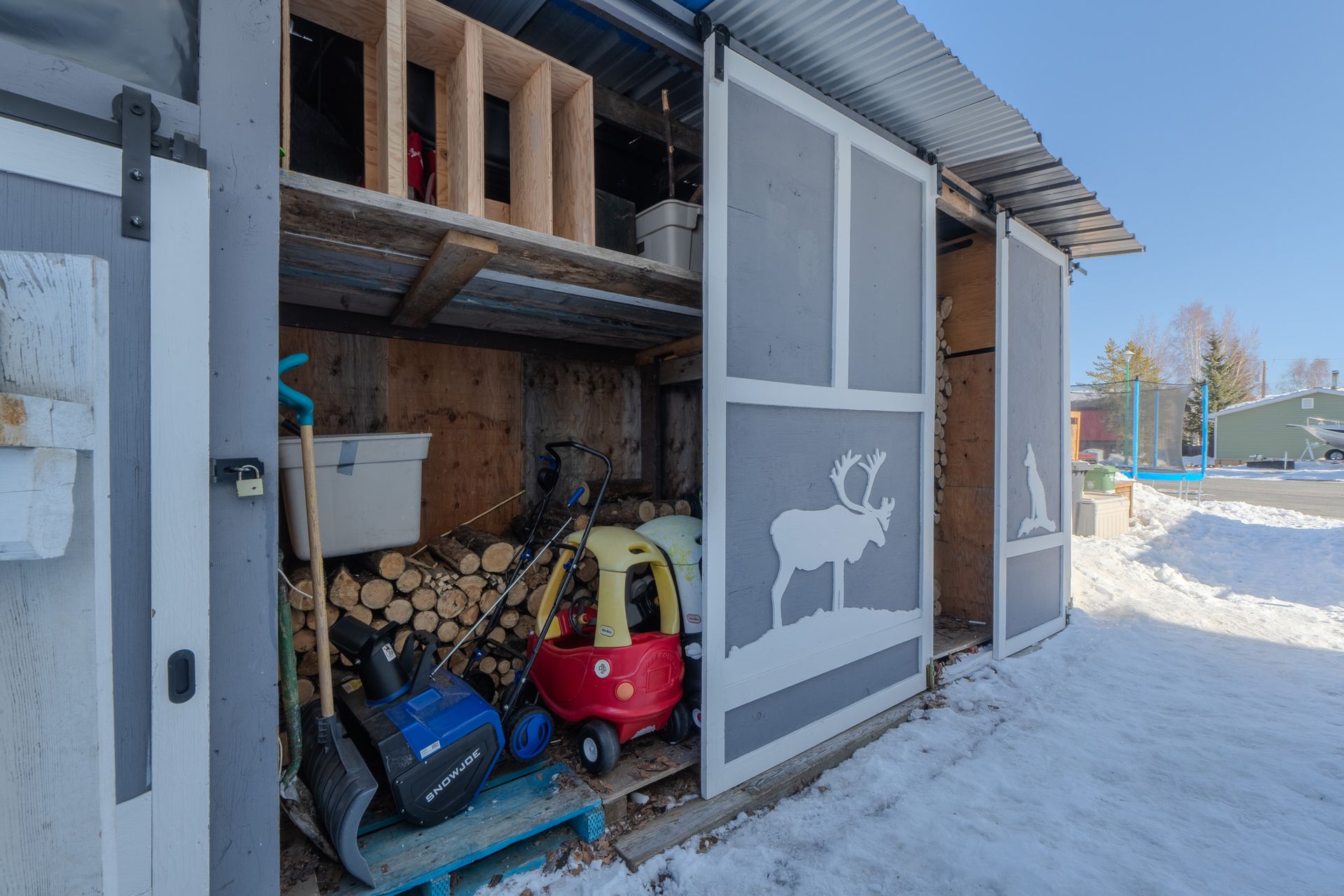 The front yard provides parking for 4+ vehicles, along with a large front deck complete with garden boxes. Along the side of the home, a custom lean-to offers excellent storage for several cords of wood, outdoor equipment, and bikes.