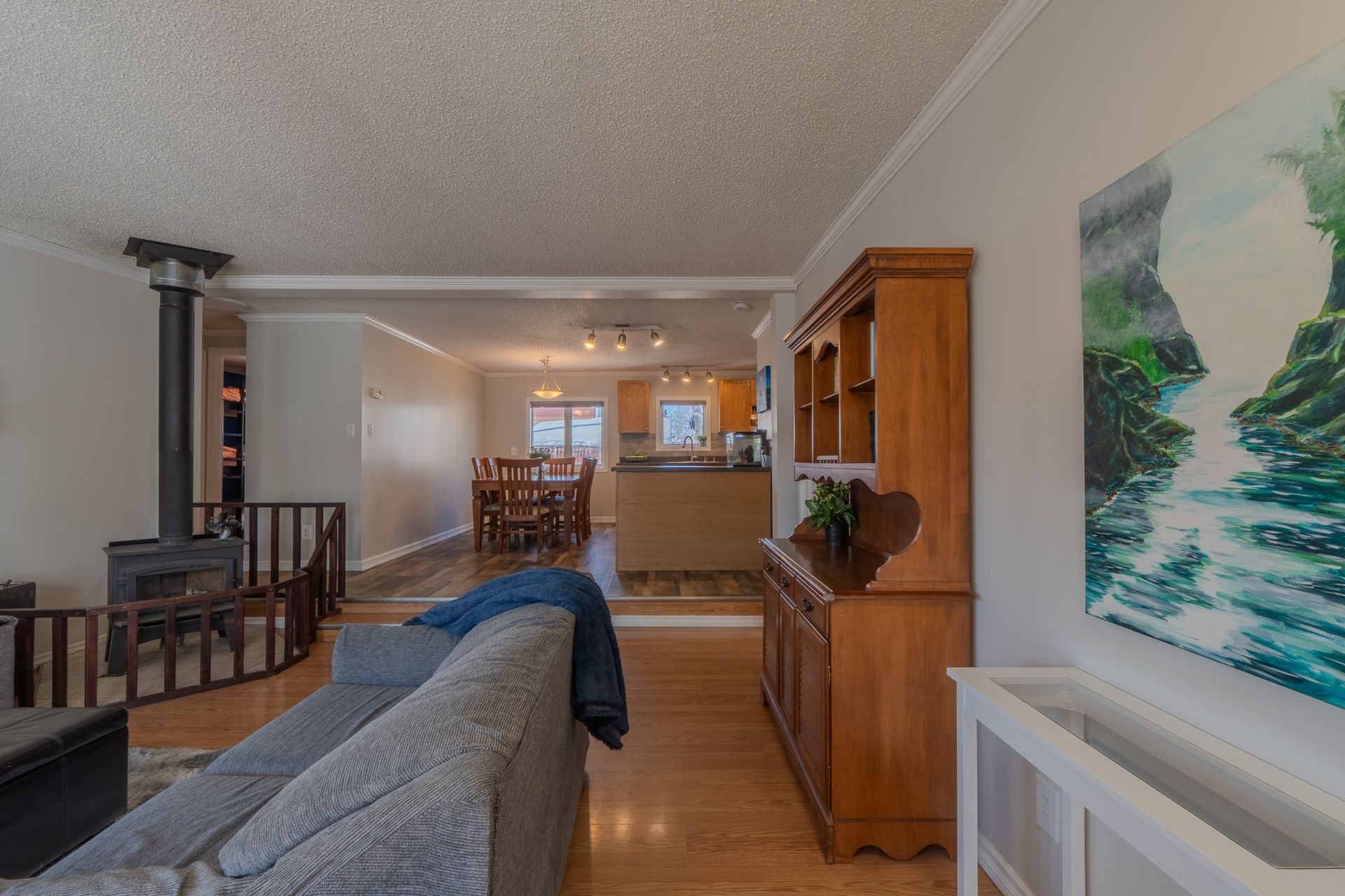 The home welcomes you with a spacious entry leading into the open-concept living space, featuring a centrally located wood-burning stove, sunken living room, and a functional kitchen with plenty of counter space. The spacious pr…imary bedroom offers an updated 3-piece ensuite, along with two additional bedrooms and a second full bathroom.